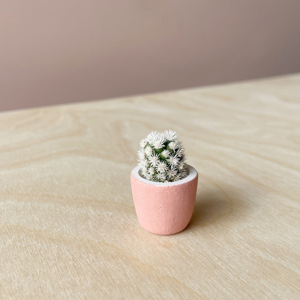 Candace Mini Cactus + Handmade White Ceramic Planter