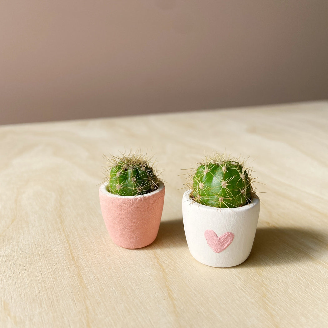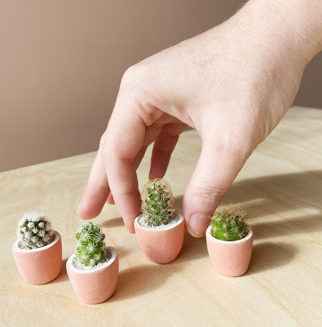 Our easy to take care of Frank Mini Cactus and Handmade Mini Ceramic Planter sets you up for the best plant parent experience - including hardy plants, a minimalist planter made for the needs of the plants, small batch soil and specific plant care instructions. You don’t even have to re-pot these plants in a bigger planter! They will stay approximately this size unless you plant them into a slightly bigger planter each year!