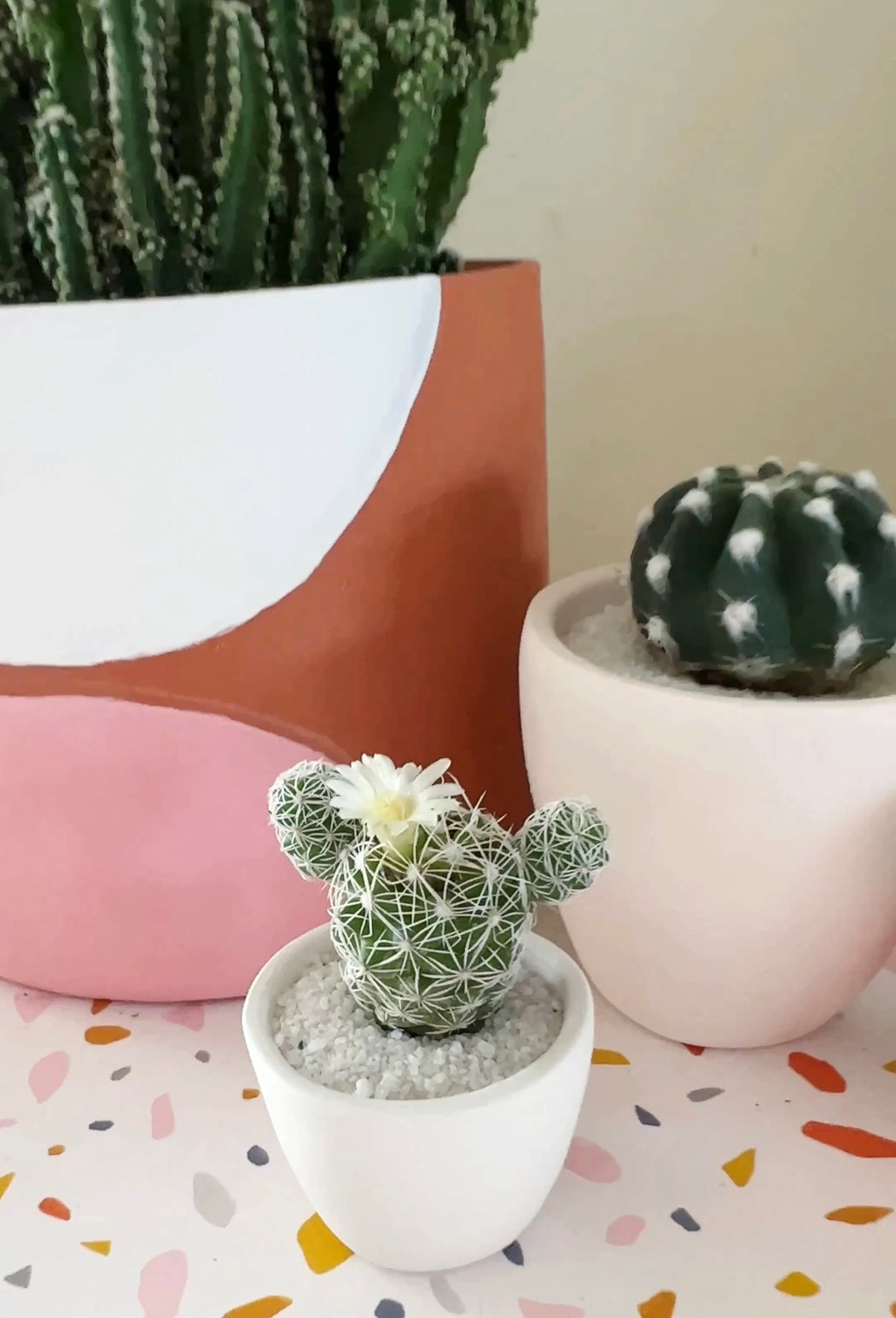 This Lino Mini Cactus + Handmade Ceramic Planter cactus stays this size and is extremely easy to care for! It’s hard to believe but even after having your plant baby for years you won’t have to put it in a bigger pot!