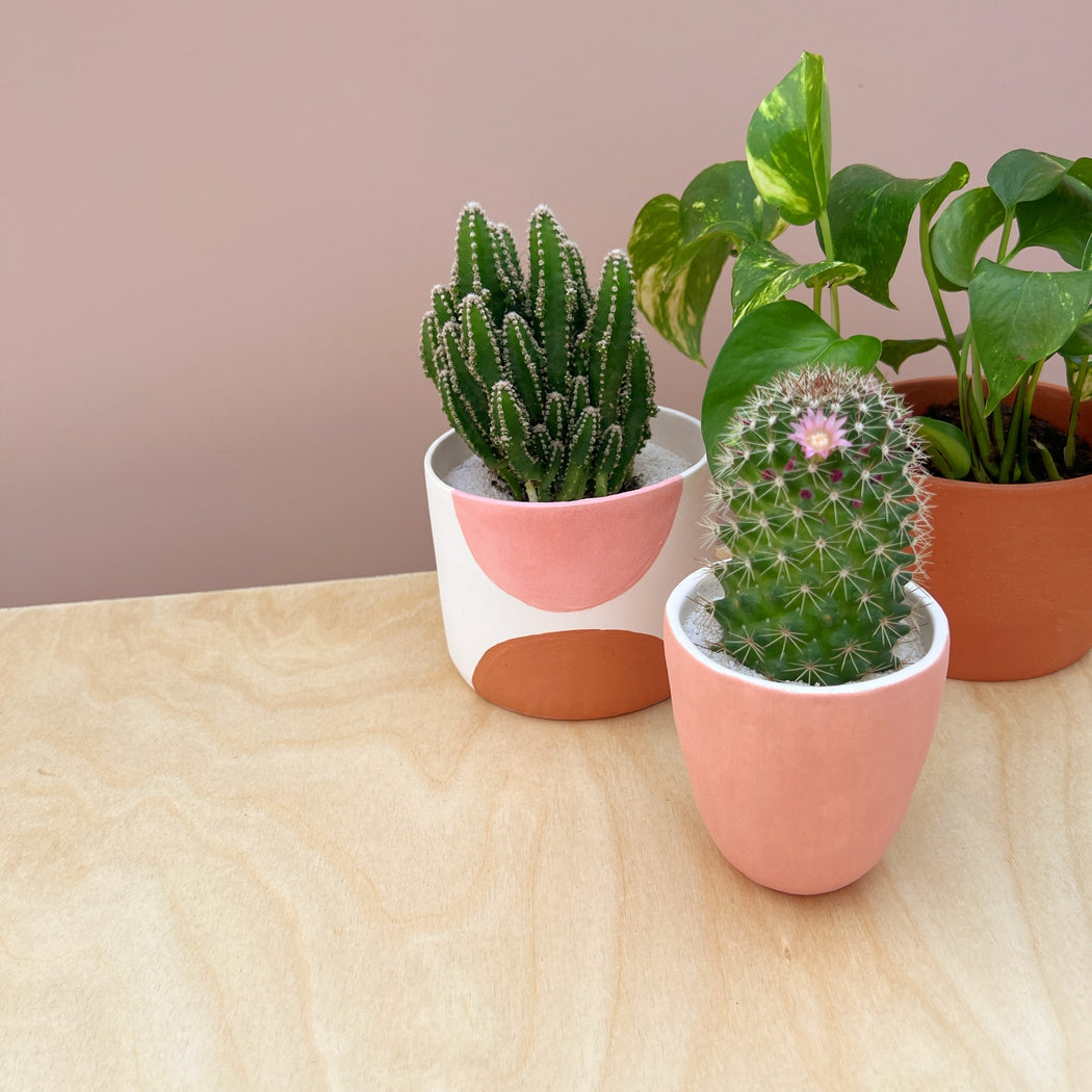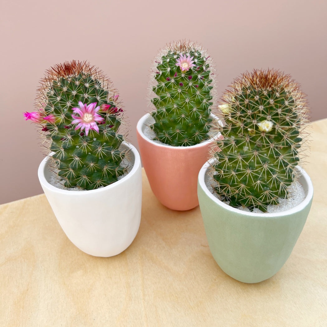 This Phillip Cactus + Handmade Ceramic Planter comes with an easy to take care of and thriving cactus, the perfect planter that replicates the plants natural environment, high quality and premium soil + sand and specific, detailed instructions so you know exactly how to take care of it. They will not need to be repotted and come with instructions for 1x per month watering!