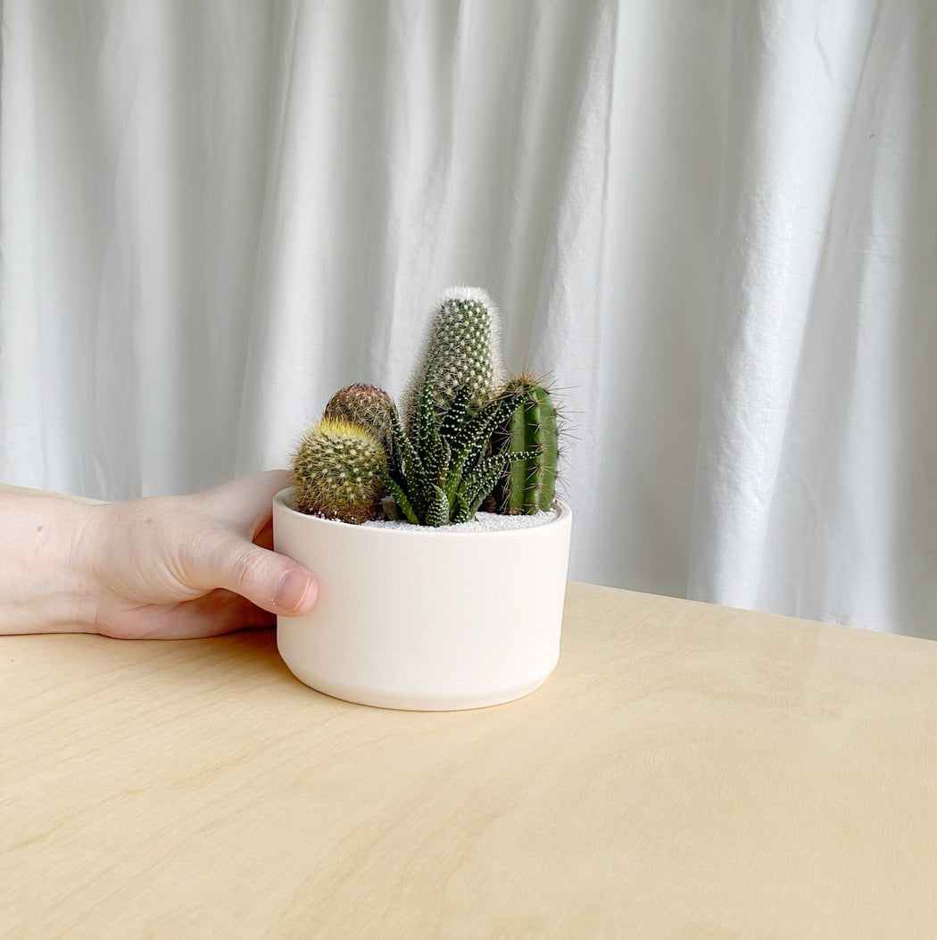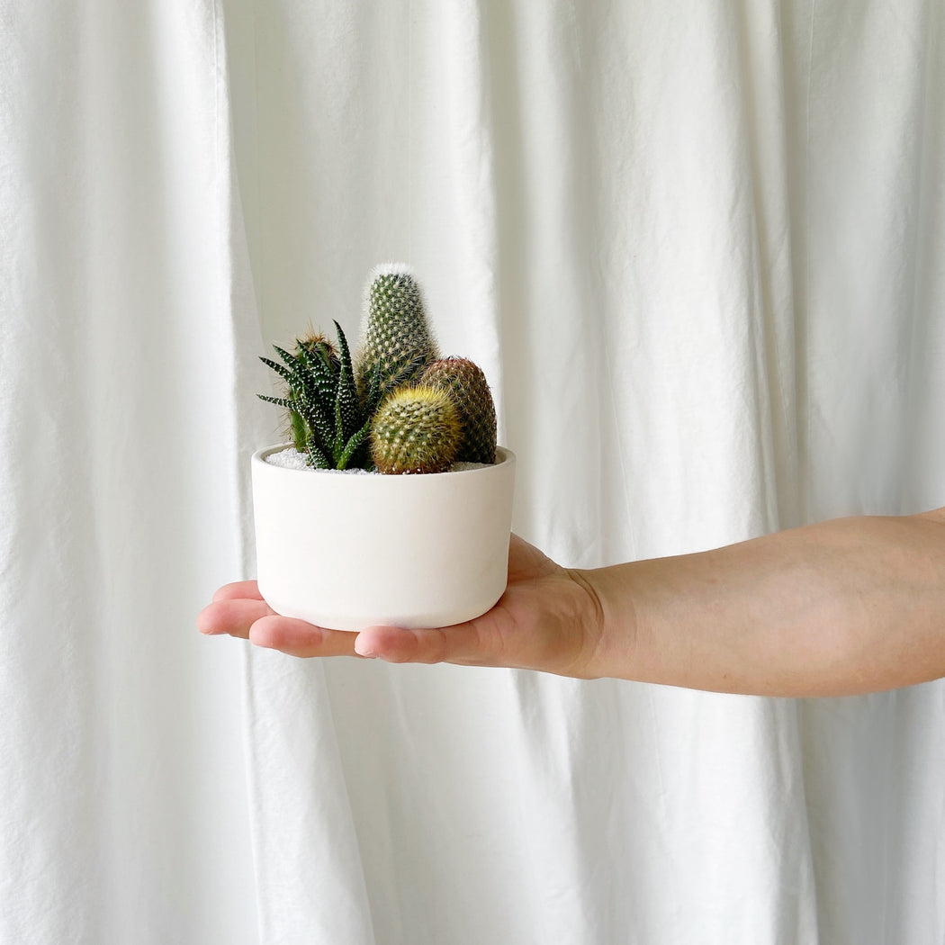 Our easy to take care of The Anti-Terrarium + Handmade Ceramic Planter sets you up for the best plant parent experience - including hardy plants, a minimalist planter made for the needs of the plants, small batch soil and specific plant care instructions. You don’t even have to re-pot these plants in a bigger planter! They will stay approximately this size unless you plant them into a slightly bigger planter each year!