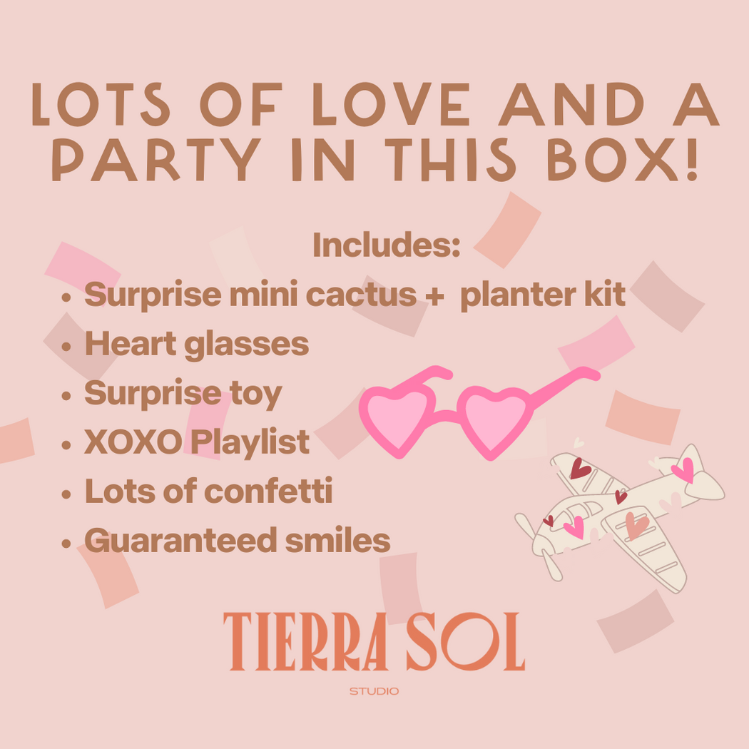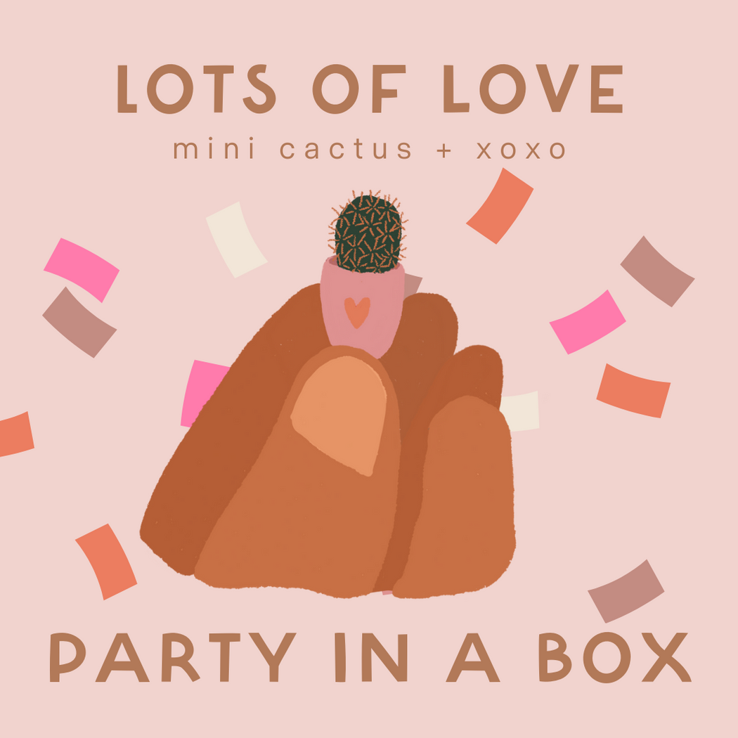 We made this Lots of Love Mini Cactus + Party Box because we believe we should send love as much and as often as possible.