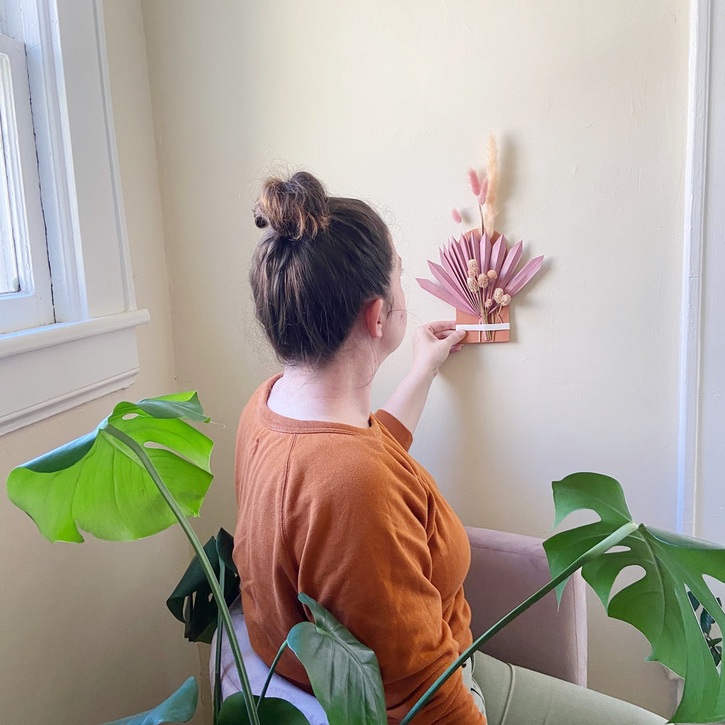 Our floral arches can be displayed hanging on a nail or leaning against a wall.
